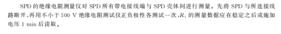 (四)绝缘电阻(Ri),SPD 所有带电接线端和壳体之间的Ri,不应小于50 MΩ。